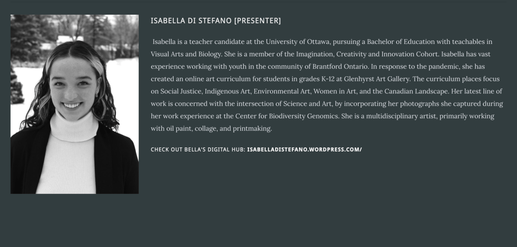 We are hoping to continue creating a sense of community belonging by bringing teacher candidates and Arts educators together through a shared sense of purpose and vision of a better world for our youth. We are passionate about creating safe equitable spaces that raise awareness of important social justice issues in both our local and global communities, and have been inspired by non-colonial sources of knowledge and sharing. We are also here to support and inspire each other throughout our professional development journey as friends and new educators by sharing insights, resources and arts-based knowledge each step of the way.